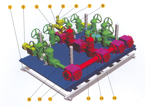 Choke manifold is necessary device to control the well kick successfully and execute the pressure control technology on oil/gas well in the course of drilling, as it is, the device is adopted to execute new drilling-well's technique of balance pressure, which can avoid pollution of oil-layer, improve the speed of drilling and control blowout effectively. One end of the device connects with the side flange of  BOP spool. When BOP closes, it can control the finite pressure from casing by adjusting the choke valve's opening, so balanced drilling can work under minimum pressure-difference .