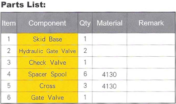 JUGH-105 test manifold manufactured by Shenhua Company is a matched assembly for hydraulic test and is a necessary equipment to achieve control of pressure . 1. Main technology specification Working pressure : 105MPa Working medium :Water & oil Working temp :-29℃ thru 121℃ Nominal bore : Main bore : Φ25m(1" ) Side bore :Φ25m(1" ) Connection type : Union Material class : EE Product specification level : PSL3 2.Structure statement The material of the manifold conform to the requirement of API Spec 16c and NACE MRO175 . The manifold consists of manual plate valve .hydraulic plate gate valve , cross , tee . flange and union etc . 3.Maintenance Cad base grease will fulfill thrust bearing and be checked of consumption and added up without delay . If go bad or polluted , it should be replaced .Check valve chamber and grease monthly , timely supplement to ensure lubrication between valve gate and valve seat and sealing reliability . Stem thread should be injected with grease . If valve stem has leakage , grease can be injected through the injection valve in the bonnet , if not applicable , the stem pack should be replaced . Out of usage . The assembly should be cleaned up and inspected . especially for plate valve . the valve gate . bonnet , valve chamber should be cleaned up , heavily abrasive part should be repaired and replaced , the grease inside valve chamber should be replace and re—filled .