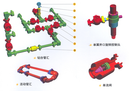 在測試過程中,地層流體經鉆桿或油管流到地面之后,必須要有控制裝置引導到分離器和燃燒器中。此裝置稱為地面控制裝置。它可以安全有效地控制流體的壓力和流量。 一、控制頭 控制頭連接在測試管柱的最上部,分為旋轉的和不旋轉的兩種。根據其承壓能力可分為35Mpa、70Mpa和105Mpa三種?刂祁^既可讓管柱內高壓液流流出,也可向井內泵入流體。 二、鉆臺管匯 用于控制流體壓力、流量的管匯。上接控制頭,下連分離器、放噴管線。 鉆臺管匯的工作壓力分為35Mpa、70Mpa和105Mpa。相應的試驗壓力為70Mpa、105Mpa和140Mpa。 三、活動管匯 用于連接控制頭、鉆臺管和放噴管線的高壓活動管匯。它由特制加厚無縫鋼管和由壬及活動彎頭組成。 管匯工作壓力分為35Mpa、70Mpa和105Mpa。相對應的試驗壓力為70Mpa、105Mpa和140Mpa。 活動管匯要定期檢查、潤滑、更換密封圈和進行液壓密封檢驗,確保測試安全。